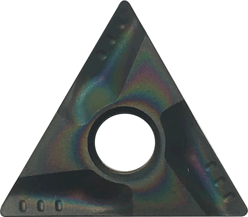 TiAl/AlCrSiMeN/AlOx是專門為硬質(zhì)合金刀片開(kāi)發(fā)的納米復(fù)合涂層,在精車、半精車和半粗車的切斷刀、車刀片上應(yīng)用效果展現(xiàn)非常優(yōu)異,在加工不銹鋼材料時(shí),通過(guò)批量對(duì)比,比在用的某國(guó)外品牌涂層刀片壽命提高2倍。