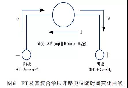 圖6為復(fù)合涂層開路電位(OCP)隨實(shí)驗(yàn)時(shí)間變化曲線,可以看出,各涂層體系的OCP均不斷降低,發(fā)生腐蝕的趨勢(shì)不斷增大。在涂層中添加G后,F(xiàn)T-G1涂層OCP在實(shí)驗(yàn)初期高于FT涂層,但實(shí)驗(yàn)到288h后兩者的OCP相接近,在實(shí)驗(yàn)720h后降低到-350mV左右,F(xiàn)T-G5涂層OCP在浸泡初期高于0mV,隨后不斷下降,在實(shí)驗(yàn)720h后保持在-300mV以上,而當(dāng)G含量達(dá)到0.15wt%時(shí),OCP在初期與FT涂層相近,在288h后急劇的下降,最終下降到-473mV,腐蝕趨勢(shì)增加,OCP較正的FT-G5涂層的腐蝕傾向低于其他涂層。