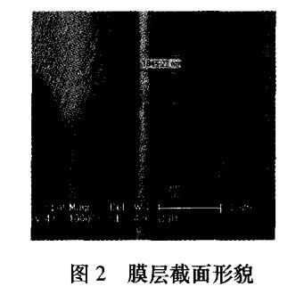 圖2為硅基上膜層的截面形貌圖。膜層微觀結(jié)構(gòu)清晰,厚度均勻一致約為2m。過渡層為柱狀晶層約為1m,晶粒邊界致密性較好。Cr-DLC為無定形結(jié)構(gòu)表面平滑,與梯度層結(jié)合良好。盡管沉積溫度較低,但采用離子源輔助沉積提高了原子的表面擴散能力,過渡層中晶粒外延形成均勻的柱狀晶組織,晶粒內(nèi)部缺陷密度較低,薄膜具有較高的強度口工晶粒的表面呈現(xiàn)晶體學平面所特有的形貌,加強了類金剛石層與梯度層的結(jié)合。