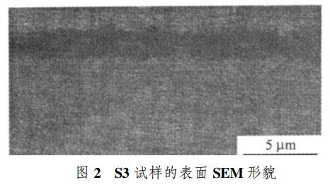 由圖2可見,S3試樣硅基體的表面致密均勻,基本無液滴顆粒存在。另外鋼基體上DLC膜表面也均無麻點出現,表面光潔呈銀黑色鏡面狀。由圖3可見,膜微觀結構清晰,厚度均勻一致,約為2um;在界面處有一厚度約0.5um的金屬鉻層,保證了過渡層的平穩銜接;由鉻層向表面的過渡層以柱狀晶方式生長,整個過渡層的柱狀晶層約為1um,晶粒尺寸均勻一致,邊界致密性較好。