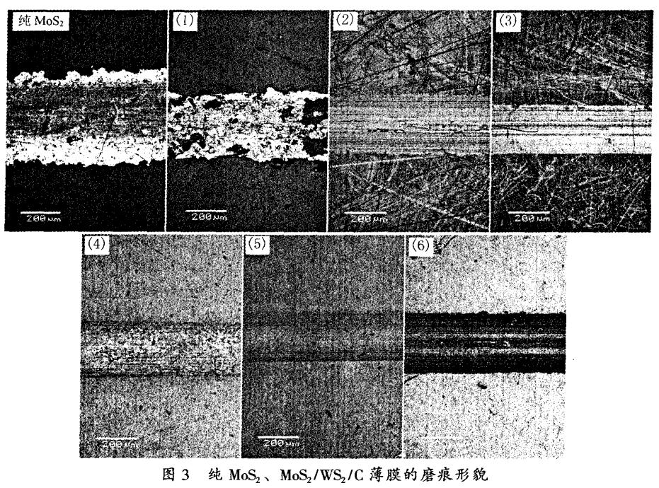 選用固體潤滑劑MoS2/WS2復合靶,采用磁控濺射法,通過在濺射氣氛中添加乙炔氣體可制備出性能優良的MoS2/WS2/C固體潤滑復合薄膜,尤其是含碳量為15.91%的5號樣品,在經過30min的摩擦過后薄膜仍舊保持了完好的表面形態。C元素的加入使得薄膜性質大為改善,在潮濕大氣中,MoS2/WS2/C復合薄膜具有優異的耐磨性能,從而大大拓展了其在各個工業領域中的應用。