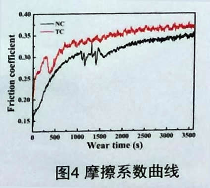 摩擦磨損實驗中,NC摩擦系數(shù)低于TC,這和NC涂層低的表面粗糙度有很大關(guān)系。