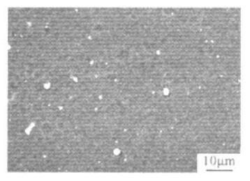 多弧離子鍍處理后試樣表面呈金黃色。圖1為TiN/TiAlN涂層的SEM照片。由圖1可以看出,Ti(C,N)基金屬陶瓷表面沉積的涂層平整光滑,表面有少量白色圓形Ti顆粒。