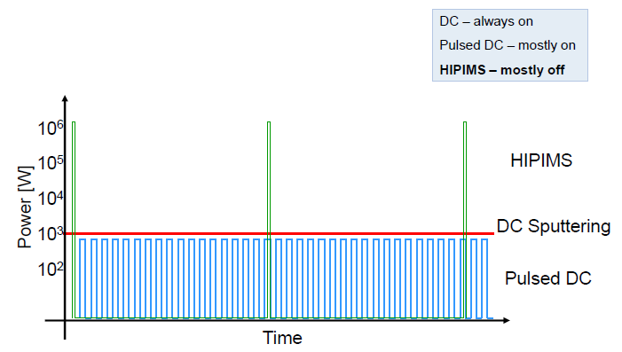 HIPIMS是高功率脈沖磁控濺射技術(High power impulse magnetron sputtering)的簡稱,其原理是利用較高的脈沖峰值功率和較低的脈沖占空比來產生高濺射金屬離化率的一種磁控濺射技術,HIPIMS的峰值功率可以達到MW級別,但由于脈沖作用時間短,其平均功率與普通磁控濺射一樣,這樣陰極不會因過熱贈增加靶材冷卻。HIPIMS綜合了磁控濺射低溫沉積、表面光滑、無顆粒缺陷和電弧離子鍍金屬離化率高、膜層結合力強、涂層致密的優點,且離子束流不含大顆粒,在控制涂層微結構的同時獲得優異的膜基結合力,在降低涂層內應力及提高膜層致密性、均勻性等方面具有閑著的優勢,被認為是PVD發展史上近30年來很重要的一項技術突破,特別是在硬質涂層和功能涂層的應用方面有顯著優勢。